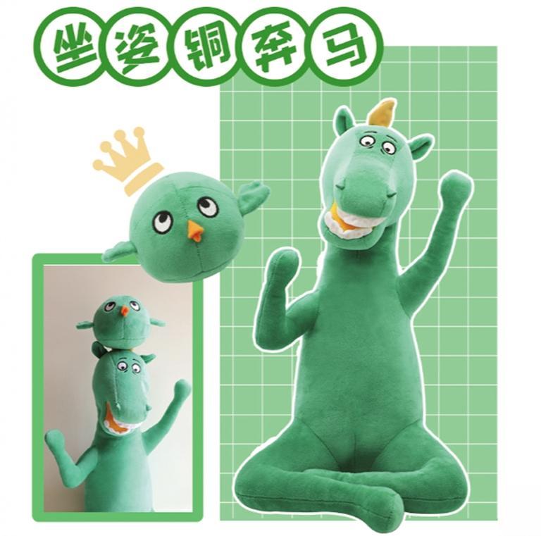 銅奔馬毛絨玩具有“一馬當先銅奔馬”站姿款和“馬到成功銅奔馬”奔跑款兩種款式。兩款玩偶形象萌趣立體,表情俏皮生動,做工精致細膩,手感柔軟舒適有彈性,深得大家喜愛。它的創(chuàng)意原型來自甘肅省博物館的鎮(zhèn)館之寶——銅奔馬。銅奔馬出土于甘肅省武威市雷臺漢墓,距今已有2000多年的歷史,是中國旅游標志物,也是古絲綢之路最具代表性的歷史文物載體。