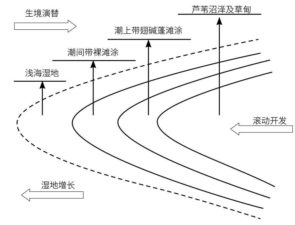 識別海平面上升和濱海濕地圍墾影響下,濱海濕地生態(tài)系統(tǒng)潛在陸向遷移通道及其遷移格局,劃定適應(yīng)海平面上升的預(yù)留藍線。
