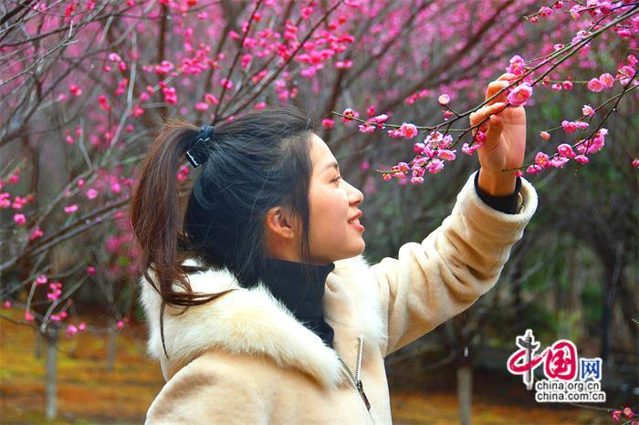 盛開的梅花散發(fā)著幽香,沁人心脾,吸引不少游客市民紛至沓來弄花探春。(劉佑祥 邱文麗 張海兵)