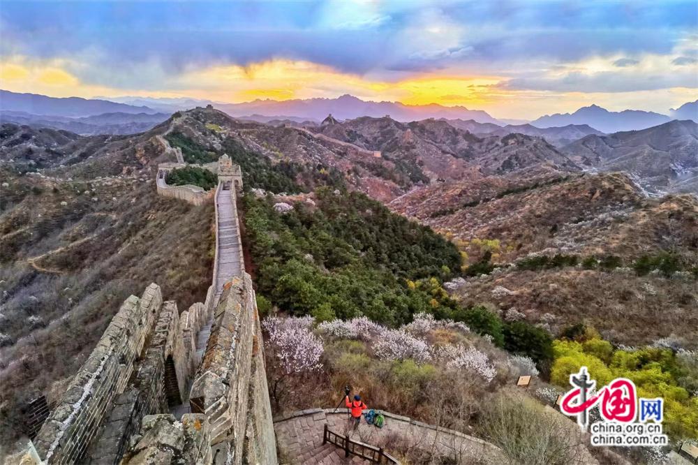 資料圖:當(dāng)長(zhǎng)城遇上杏花。 張愛(ài)東 攝 圖片和作品內(nèi)容無(wú)關(guān)