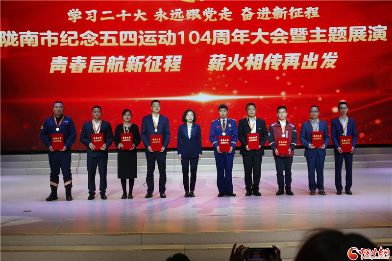 大會(huì)表彰了2022年度隴南市五四紅旗團(tuán)委、五四紅旗團(tuán)支部,向2022年度隴南市優(yōu)秀共青團(tuán)員、優(yōu)秀共青團(tuán)干部頒發(fā)了獎(jiǎng)狀,向第11屆“隴南青年五四獎(jiǎng)?wù)?rdquo;獲得者頒發(fā)了獎(jiǎng)?wù)隆?/p>