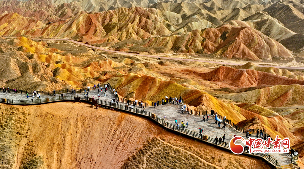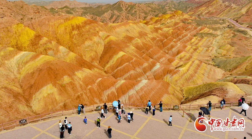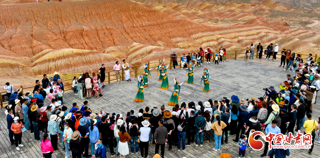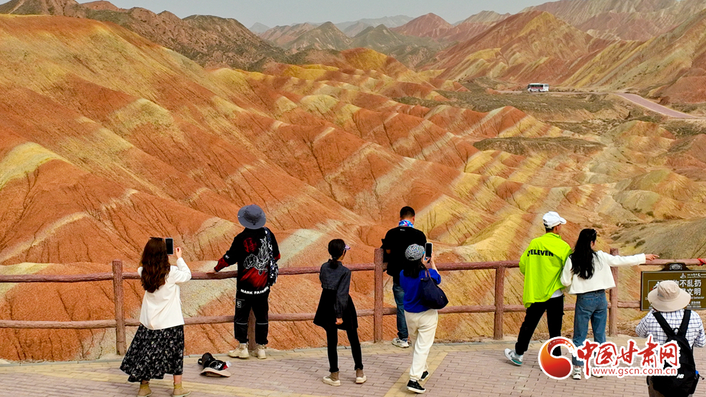 5月1日,甘肅張掖七彩丹霞旅游景區(qū)內游人如織,來自全國各地的18000多名游客慕名前來,欣賞獨特的丹霞地貌,領略大自然雄奇壯觀的景色。