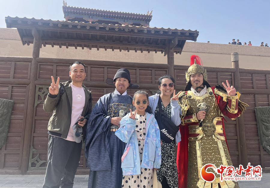 中國(guó)甘肅網(wǎng)5月3日訊(通訊員 陳楚)“開城,迎賓。”5月1日上午,在嘉峪關(guān)關(guān)城景區(qū),隨著號(hào)角聲響起,兩名門衛(wèi)士兵緩緩打開城門,來自全國(guó)各地的游客,隨著守門將軍的步伐,誓師出征,游客們置身歷史氛圍,仿佛回到古時(shí)的大漠邊關(guān)。
