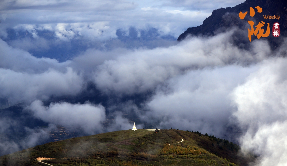 圣潔白塔在云霧中堅立,仿佛處于仙界。山腳下,是原生態(tài)的藏寨,淳樸和善的村民日出而作,日入而息……