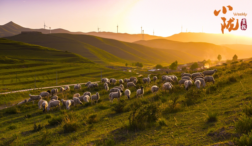 極目遠(yuǎn)望,隨著山坡緩緩蔓延開來的草原,被溫柔的落日余暉浸染,變得美不勝收,盡收眼底。