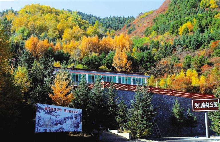 如果說金溝有十分秋色,那么八分都集中在關(guān)山森林公園。生活在金溝鄉(xiāng),秋天若不到關(guān)山森林公園走走,那便錯過了一剪美麗的秋光與一抹靜謐的秋韻。從西固城區(qū)至關(guān)山森林公園需要走20公里山路,公路依山而建、峰回路轉(zhuǎn)、路隨山走,海拔逐漸走高,景觀各有不同。行走其中,宛若走進彩色畫廊,景色豐富,讓人目不暇接。
