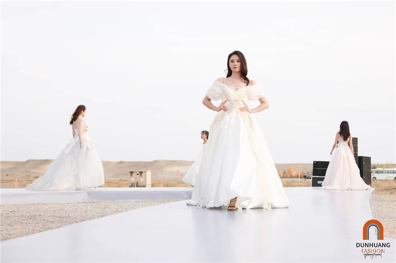 張肇達表示,時尚秀選在玉門關(guān)遺址,是歷史與自然的結(jié)合。為了辦好這場秀,此前他來到玉門關(guān)采風,感受過黃沙漫漫,更覺歷史厚重。在這么一個具有中國人文情懷的邊關(guān)走秀,他在婚紗設(shè)計中特別融入了玉門關(guān)外墻的質(zhì)感和流沙的靈動,這些都在新派婚紗中有很好的體現(xiàn)。