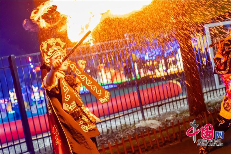 民族的才是世界的,輕輕一轉(zhuǎn),就是一張臉譜;水袖一甩,就是驚聲一片。高蹺、變臉、噴火……燈火映襯下是一代代傳承的國粹表演。