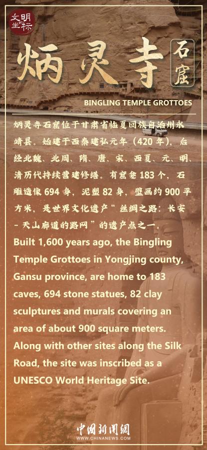 炳靈寺石窟位于甘肅省臨夏回族自治州永靖縣。歷史上,古絲綢之路南線和唐蕃古道在這里交匯,造就了璀璨的多元文化藝術(shù)瑰寶。炳靈寺石窟也是絲綢之路上的第一座黃河石窟,始建于西秦建弘元年(公元420年),距今已有1600多年的歷史。在南北長約2000米的懸崖峭壁上,石窟神龕鱗次櫛比,保存有西秦以來多個歷史時期的壁畫和雕塑,被稱為“中國石窟的百科全書”。走近這座懸崖上的“湖畔石窟”,欣賞西秦石刻造像之剽悍雄健,北魏之秀骨清像、隋唐之飽滿瑰麗,感受其沉淀的千年文化。