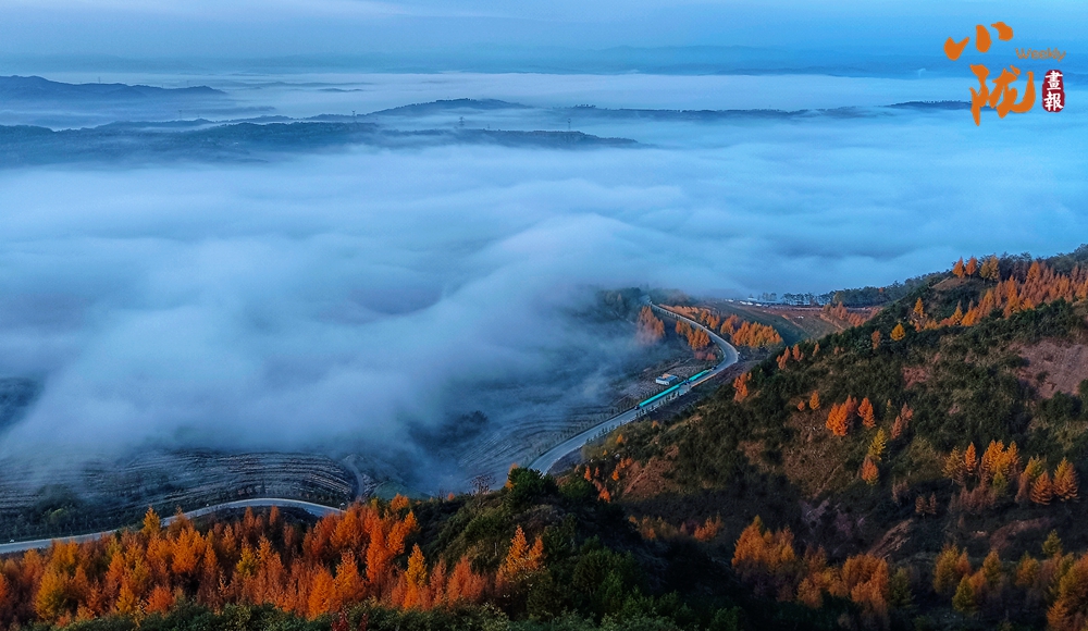 一場秋雨過后,境內云華山呈現出一瀑萬頃、白浪翻滾的云海景象。