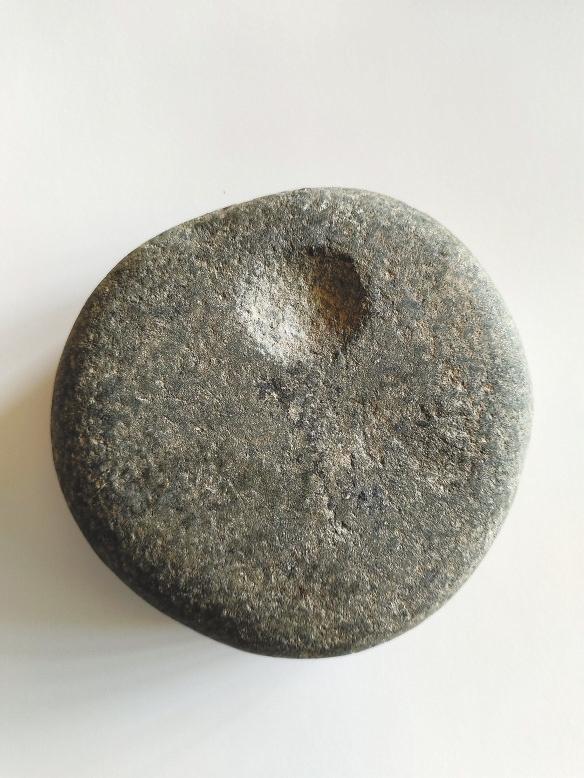 齊家文化的“盤狀石器”除“敲砸器”以外,還有一點(diǎn)比較特殊,其雙面分別琢制有日紋和月紋。目前所知,這類“盤狀石器”只在齊家文化遺存中出現(xiàn),是齊家文化石器的特有器型,石質(zhì)大多為礫石、河礫石。這種齊家文化特有的琢紋盤狀石器,學(xué)界尚未有統(tǒng)一命名,通常所見為:“圓形見手窩敲砸器”“刻符石”“刻符石器”。民間俗稱為:“練功石”“日月石”“星月石器”等。