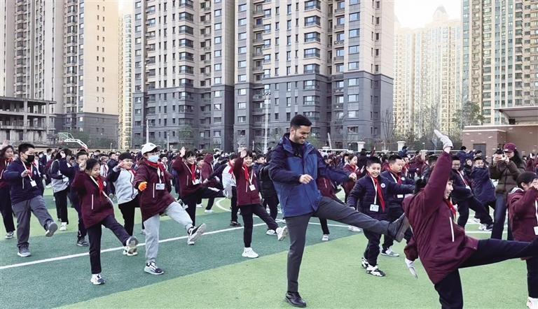 安安和學生們一起做操