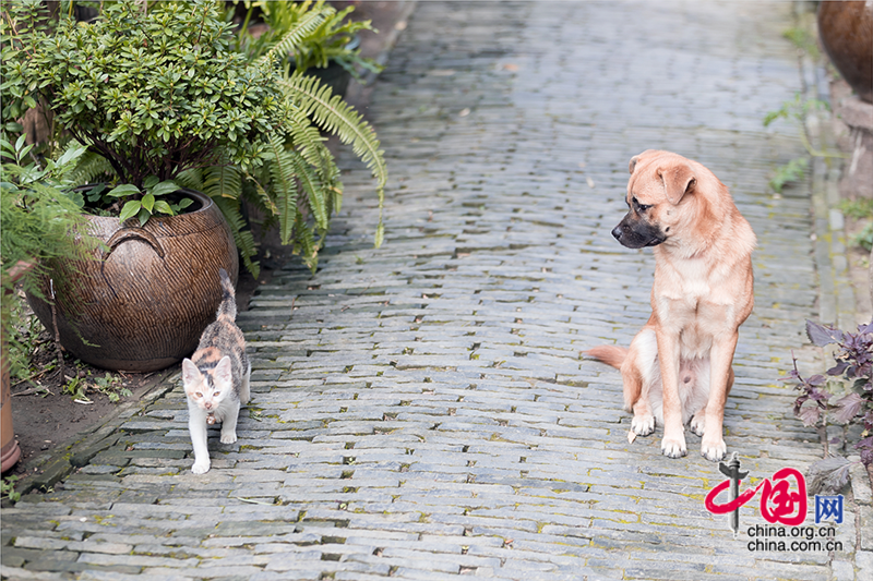 行在青石板路上,總會遇到不同的「原住民」和主人,狹路相逢時,倏地就跑進(jìn)了自己的地盤。