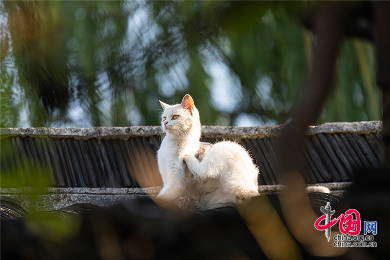其實在周莊古鎮(zhèn)里,常有小可愛們漫步長街窄巷,它們每天不帶目的地落在古鎮(zhèn),從這頭到那頭,把一個細(xì)枝末節(jié)的周莊都寫進(jìn)巷子。這里的一磚一瓦、一草一木,陪伴了它們的四季三餐。它們是周莊非常特別的「向?qū)А梗芮f也是它們的幸福之家。