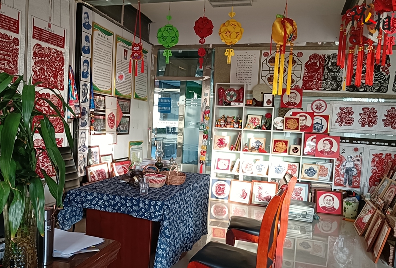 走進(jìn)中國(guó)民間剪紙藝術(shù)大師馬路的工作室,陳列在側(cè)的剪紙作品在窗內(nèi)的光影下顯得栩栩如生、惟妙惟肖。
