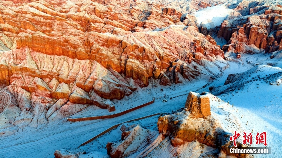 1月24日,雪霽初晴的甘肅省張掖市臨澤縣板橋鎮(zhèn)境內的紅溝丹霞銀裝素裹,雪景如畫。圖/CNSphoto 楊瀟 攝