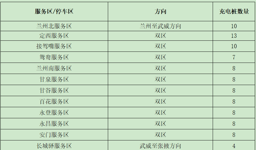 ?。ǘ┲攸c客運車站班線。省內(nèi)二級及以上客運站正常營運,以省會城市、人口密集市縣的站點及之間的班線為重點。如:蘭州客運東站、南站,天水汽車站等站點以及蘭州—定西、蘭州—西峰、臨洮—平川、舟曲—武都、金昌—武威等客運班線。 (三)車流量較大服務(wù)區(qū)。預(yù)計我省車流量較大服務(wù)區(qū)為定西服務(wù)區(qū)、酒泉服務(wù)區(qū)、武威服務(wù)區(qū)、高臺服務(wù)區(qū)、長城驛服務(wù)區(qū)、靜寧服務(wù)區(qū)、會寧服務(wù)區(qū)、太石服務(wù)區(qū)、蘭州北服務(wù)區(qū)、接駕嘴服務(wù)區(qū)、永登服務(wù)區(qū)。