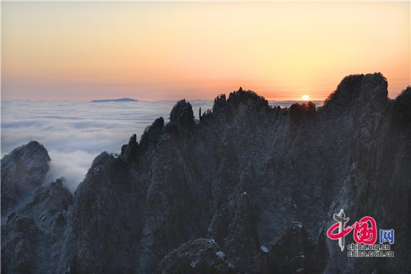 原標題:只有一個黃山:雪后日出、云海同現(xiàn) 美輪美奐