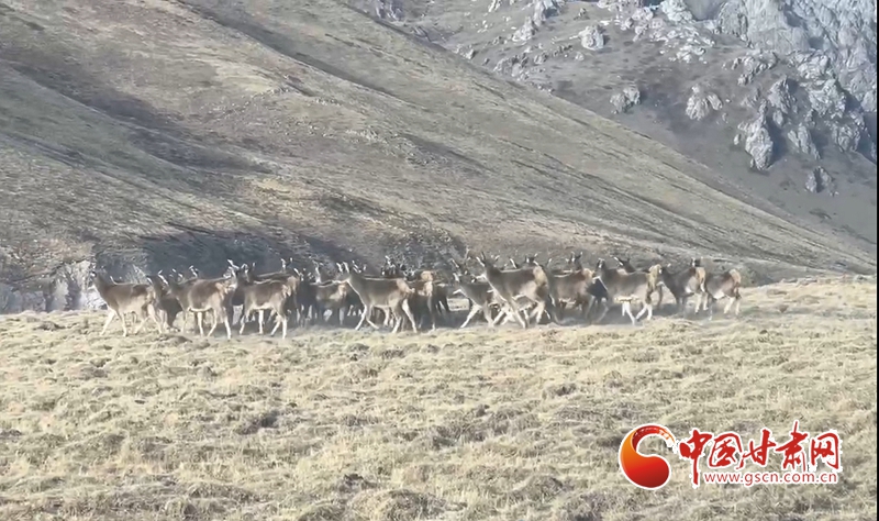 【甘快看】國(guó)家一級(jí)保護(hù)野生動(dòng)物白唇鹿群“春游”祁連山