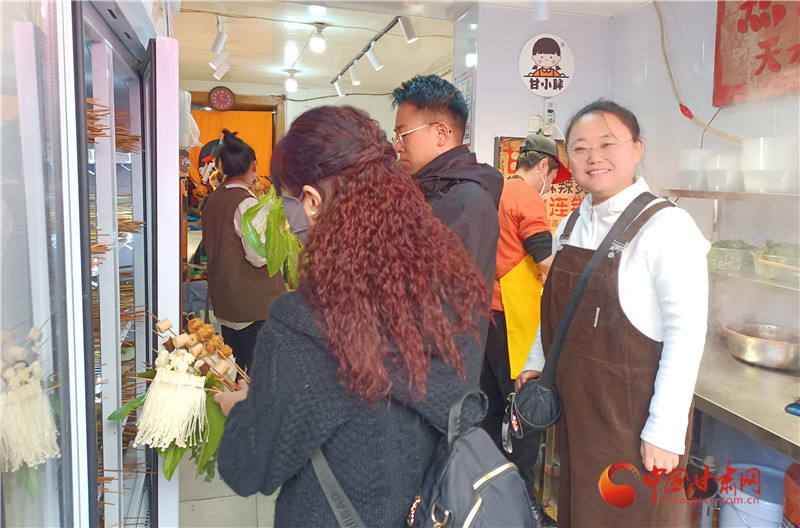 忙不完,根本忙不完,在天水麻辣燙最火爆的四合院,張明霞團(tuán)隊(duì)的“甘小胖”麻辣燙也有一家實(shí)體店,正在為天南海北的游客煮麻辣燙。與其他店面不同,他們店還提供天水麻辣燙調(diào)料包,游客覺(jué)得好吃可以買回家自己做。