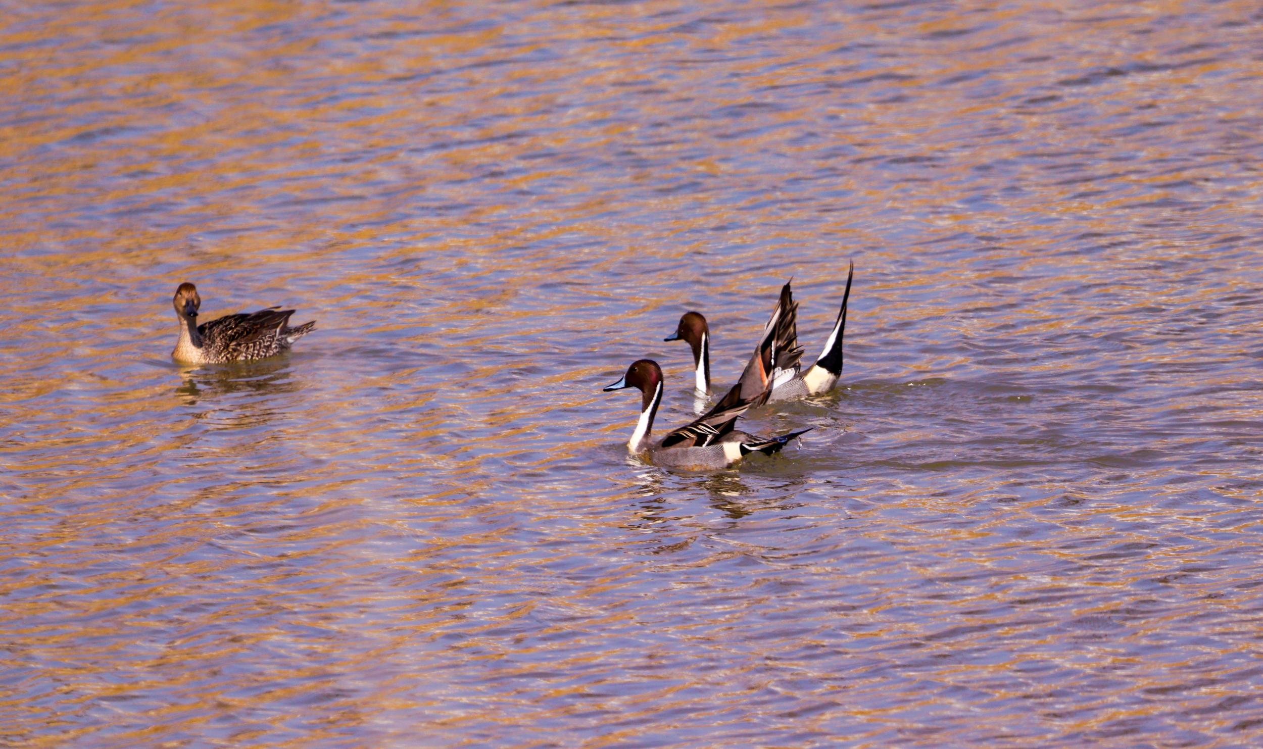 據(jù)了解,針尾鴨,因尾巴像一根針而得名。針尾鴨不僅分布廣,種群數(shù)量亦相當豐富。在各種內(nèi)陸河流、湖泊、低洼濕地都可以見到它們的身影,在開闊的沿海地帶也可以看到。