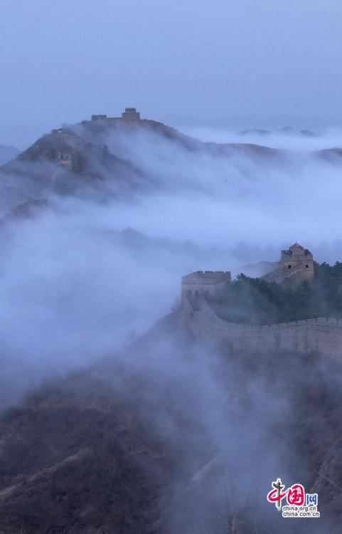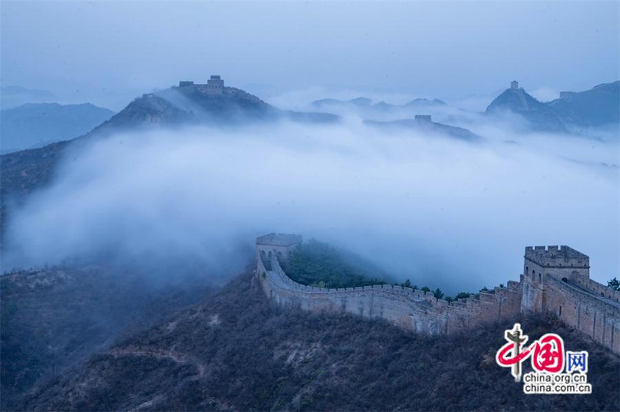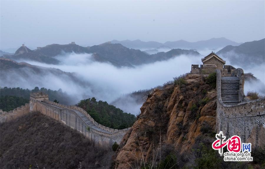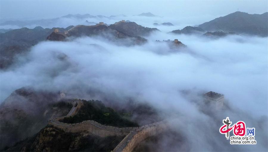 春風(fēng)輕撫金山嶺, 茫茫云海與蜿蜒長(zhǎng)城相互映襯,構(gòu)成了一幅幅壯美畫(huà)卷。