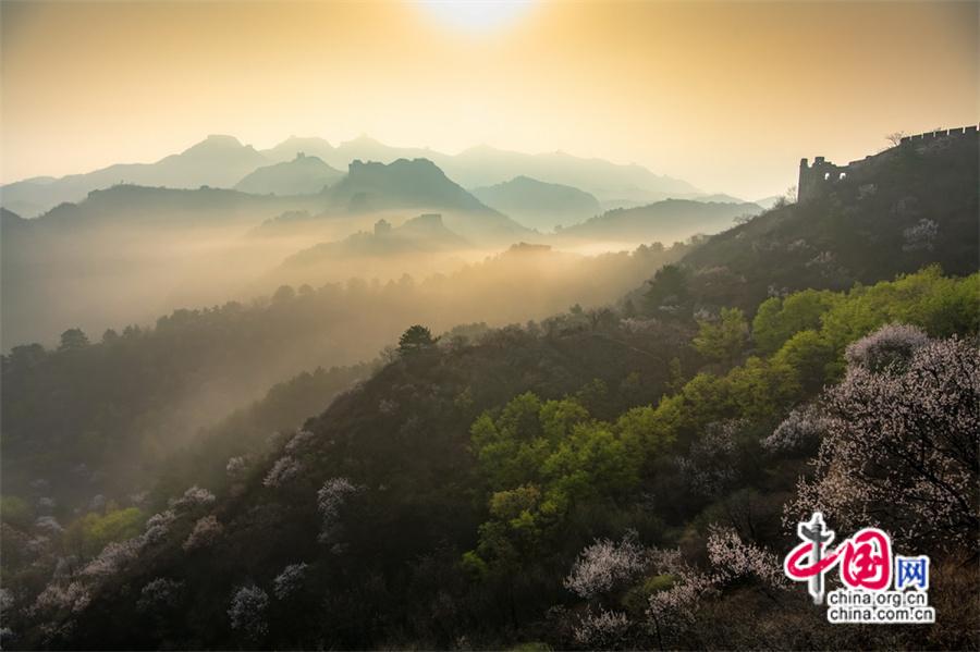 四月長(zhǎng)城壯觀(guān)云海驚艷 金山嶺杏花共舞春風(fēng)