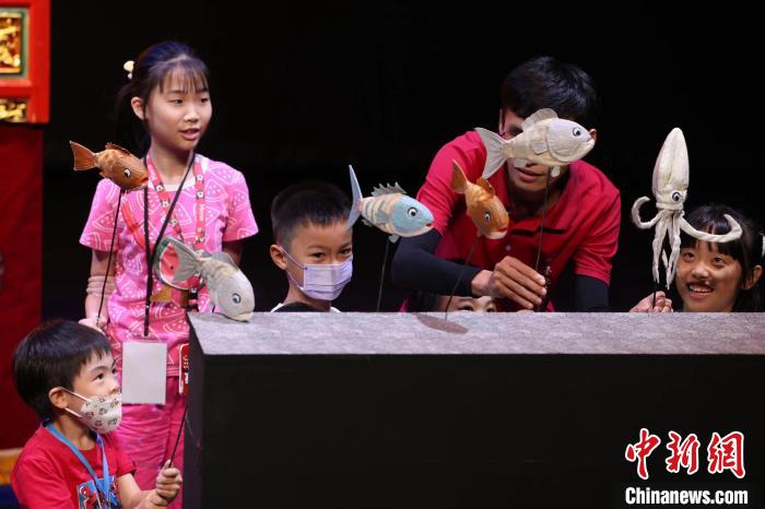 7月10日,臺灣傳統(tǒng)藝術中心2024兒童戲曲巡演活動“請囡仔來看戲”在臺北起跑。圖為臺北木偶劇團在記者會現(xiàn)場為兒童表演。(臺灣傳統(tǒng)藝術中心 供圖)