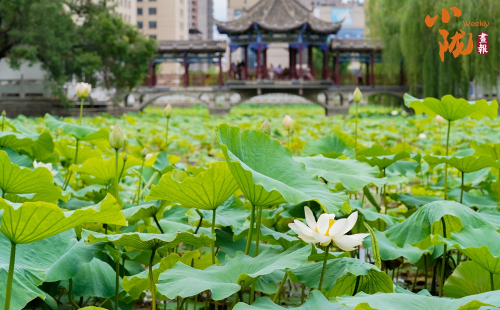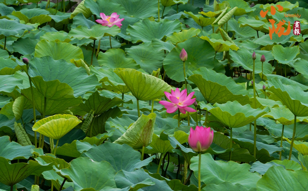 大片的荷葉層層疊疊,一支支荷花婷婷水中,在蓮葉的映襯下展現(xiàn)出更加?jì)擅膭?dòng)人的風(fēng)韻,為炎炎夏日增添了幾分詩情畫意,讓前來觀賞的群眾領(lǐng)略了荷葉田田的生態(tài)美景。