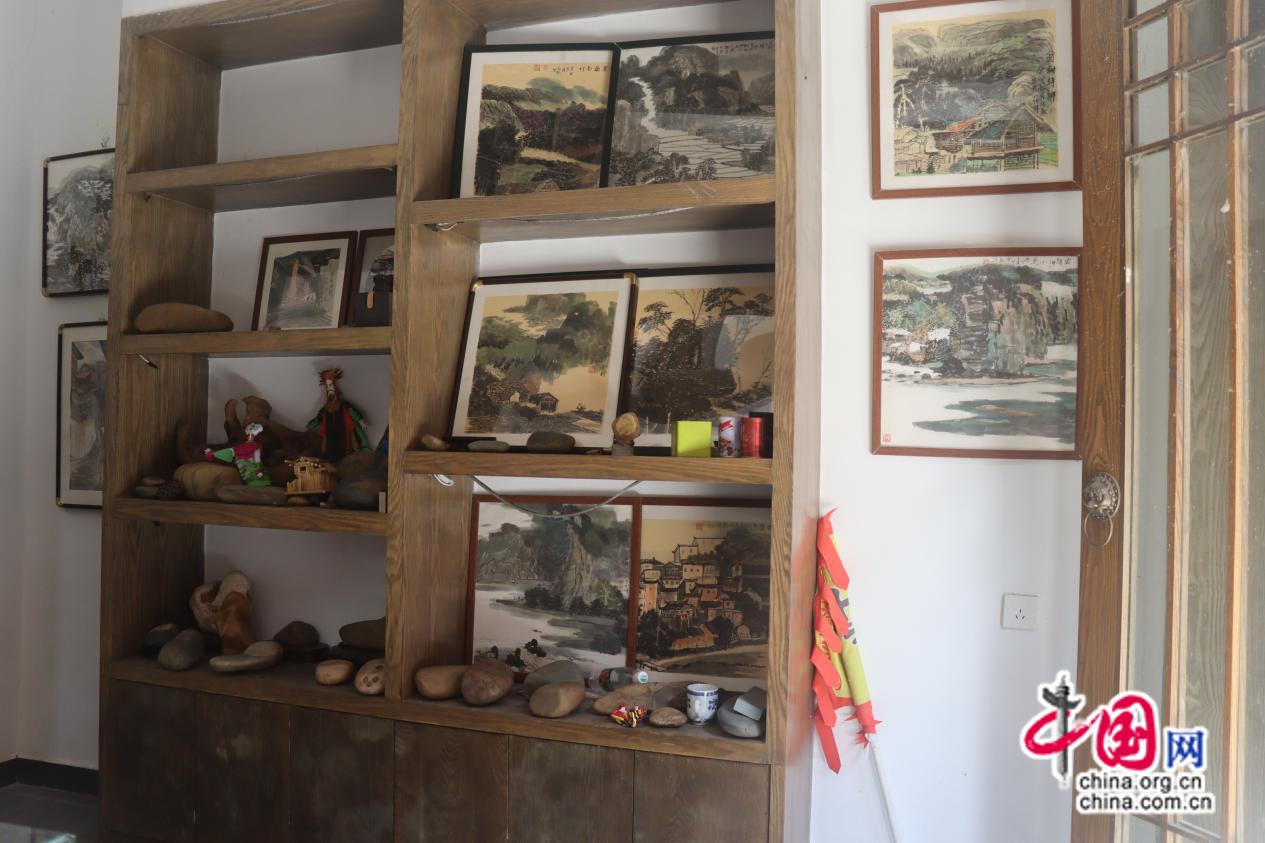 楊必熙所作的山水畫(huà)和所展示的奇石。劉潔供圖