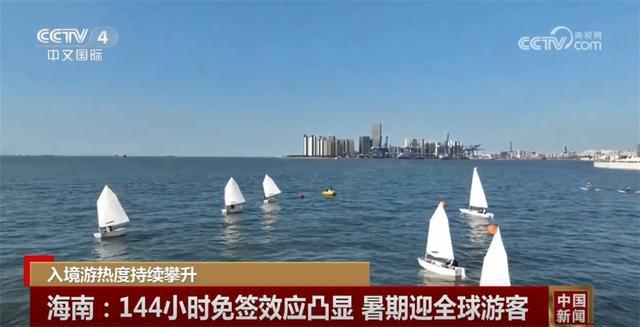 以熱帶島嶼風光著稱的海南,在這個暑期也迎來世界各地的游客。在??谑形餍愫┓暹\動基地,一個來自英國的研學團正在這里學習帆船帆板。