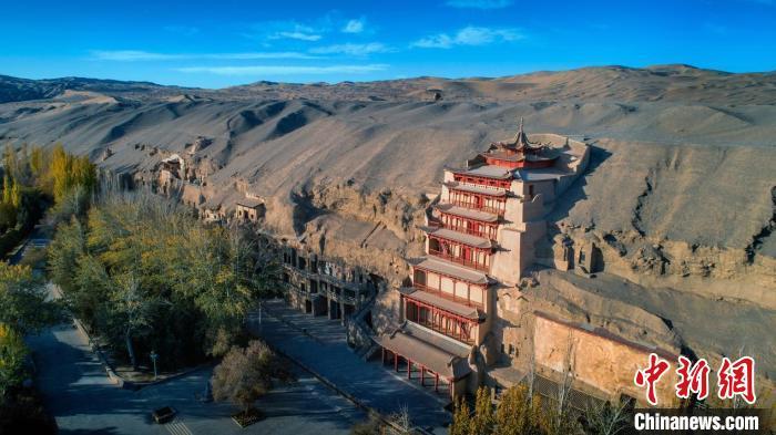 圖為敦煌莫高窟標(biāo)志性建筑“九層樓”。(資料圖,敦煌研究院供圖)