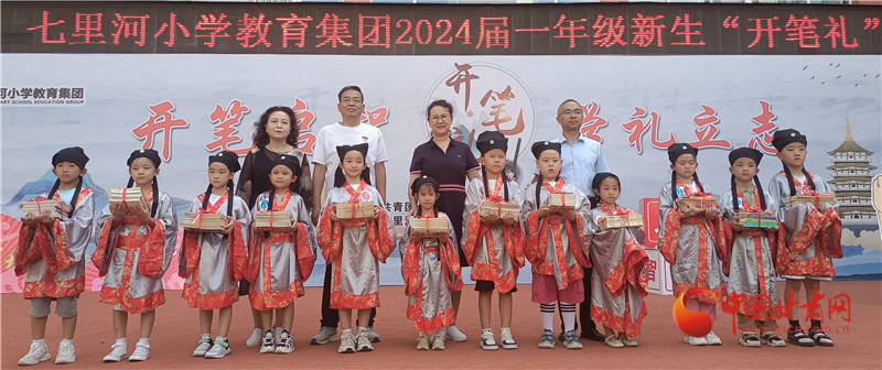 據(jù)介紹,七里河小學(xué)開筆禮服裝均由學(xué)校提供,每年使用后清洗保存,學(xué)生不用租借禮服。學(xué)校將開筆禮的儀式一年年傳承下來,希望同學(xué)們可以接受到傳統(tǒng)文化,從寫人字入手,感受人字帶來的人生哲理,開啟新的學(xué)習(xí)生涯。同時(shí),開筆禮中的端正衣冠、朱砂啟智、擊鼓鳴志等都是傳承千年的入學(xué)禮儀,是孩子們了解中華傳統(tǒng)文化的一個(gè)窗口。