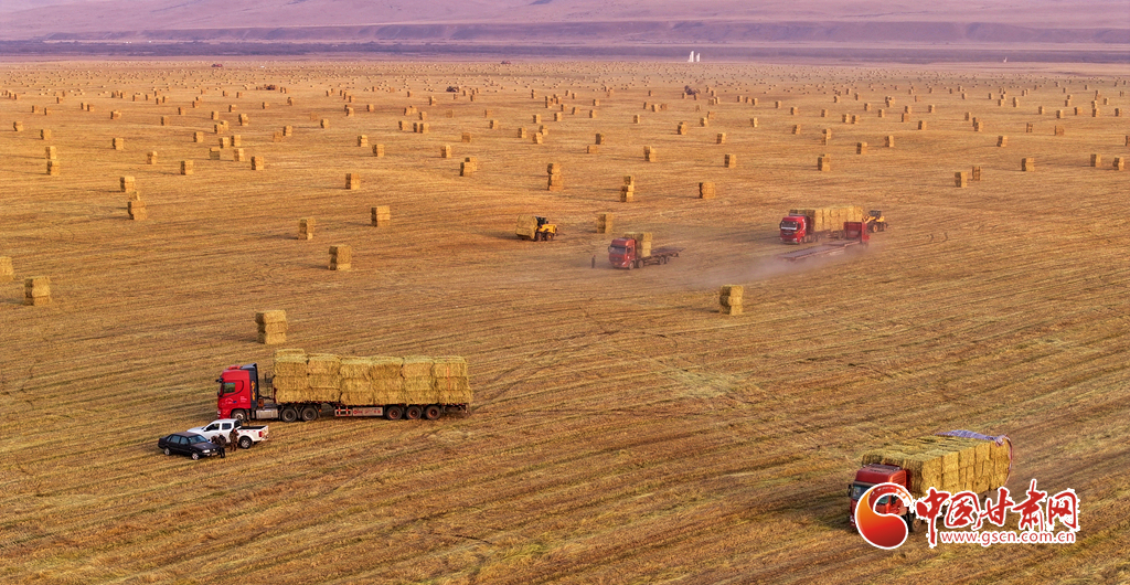 11月11日,甘肅山丹馬場的10萬畝燕麥草進入打包高峰期,田野上呈現(xiàn)出一派繁忙而有序的景象。放眼田間,大型農用機械來回穿梭,將燕麥草迅速壓縮、打包,一個個草捆整齊排列。與此同時,滿載草捆的運輸車在田間小道上來回奔波,將成品送往倉庫和銷售地。