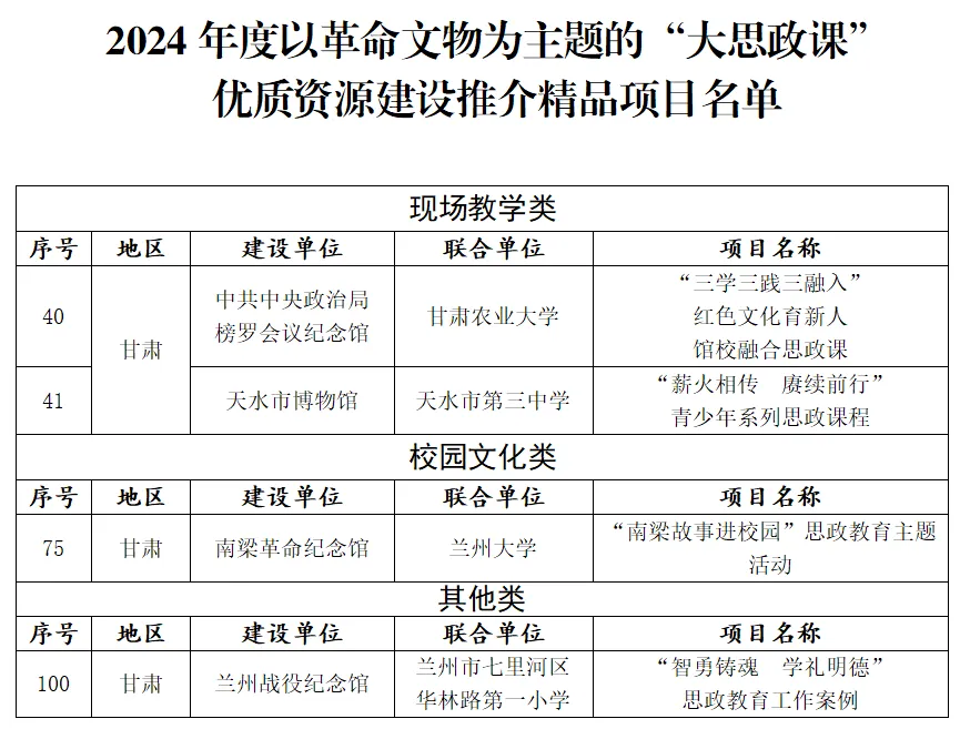 甘肅4項案例入選2024年度以革命文物為主題的“大思政課”優(yōu)質資源建設推介項目名單