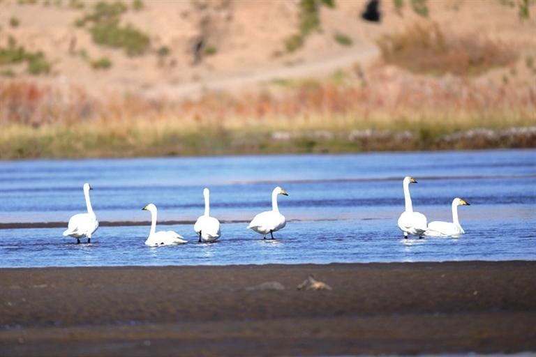 近日,高臺(tái)縣黑河濕地多次監(jiān)測(cè)到大天鵝種群,它們的翩翩降臨,標(biāo)志著天鵝一年一度的越冬之旅正式開(kāi)啟。 大天鵝是雁形目鴨科天鵝屬鳥(niǎo)類(lèi),又稱(chēng)黃嘴天鵝,全身潔白,僅頭稍沾棕黃色;喙黑色,上喙基部黃色,喙端黑色;跗跖、蹼、爪也為黑色,是國(guó)家二級(jí)保護(hù)動(dòng)物。天鵝對(duì)棲息地的選擇極為苛刻,它們的到來(lái)是高臺(tái)縣黑河濕地生態(tài)環(huán)境質(zhì)量?jī)?yōu)良的有力證明。