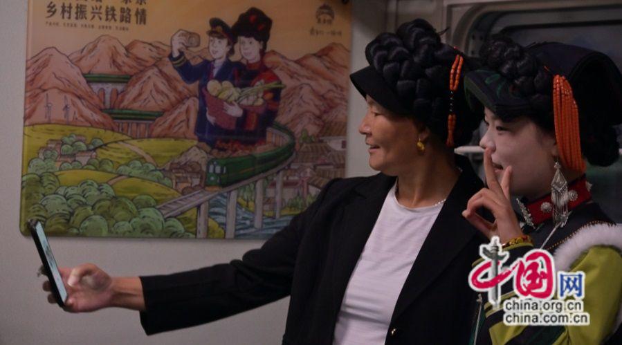 2024年11月20日,成昆線5633次慢火車(chē)上彝族乘客合影留念。原波 攝