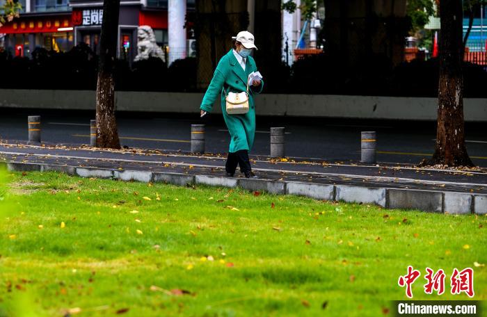 11月25日,市民在街頭出行。當(dāng)日,武漢受寒潮天氣影響,氣溫下降明顯。武漢市氣象臺(tái)24日18時(shí)27分發(fā)布寒潮藍(lán)色預(yù)警信號(hào),受較強(qiáng)冷空氣影響,預(yù)計(jì)24日至26日,武漢最低氣溫降幅達(dá)7℃~9℃。中新社記者 張暢 攝