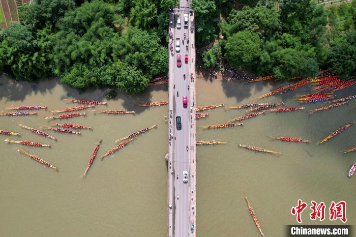今年6月,永州道縣龍舟賽創(chuàng)吉尼斯世界紀(jì)錄。中新網(wǎng)記者  楊華峰 攝