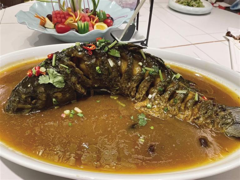 “黃河大鯉魚(yú)、蘭州糟肉、麻辣肉、老蘭州燴菜這些都是隴菜中的必點(diǎn)菜式!”董巖向記者介紹了店里的招牌菜:黃河宏豐鯉魚(yú)王,魚(yú)肉質(zhì)鮮嫩細(xì)膩、營(yíng)養(yǎng)豐富,在隴菜傳統(tǒng)烹飪技法中,紅燒黃河鯉魚(yú)堪稱經(jīng)典做法,搭配廚師精致的排盤(pán),色澤紅亮的魚(yú)身與青蔥翠綠相互映襯,香氣撲鼻,令人垂涎欲滴。蘭州糟肉在隴菜中是一道極具特色的傳統(tǒng)名菜,每逢佳節(jié),它更是成為蘭州人家餐桌上必不可少的一道佳肴,承載著濃濃的節(jié)日氛圍和家的味道。精選肥瘦相間的五花肉,經(jīng)過(guò)刀工、糟鹵腌制、放入蒸鍋中蒸熟等一系列操作,肉質(zhì)變得軟爛,肥而不膩,糟香四溢。當(dāng)入口品嘗時(shí),那濃郁的糟香味瞬間在口中散開(kāi),與五花肉的醇厚口感完美搭配,相得益彰,讓人回味無(wú)窮。