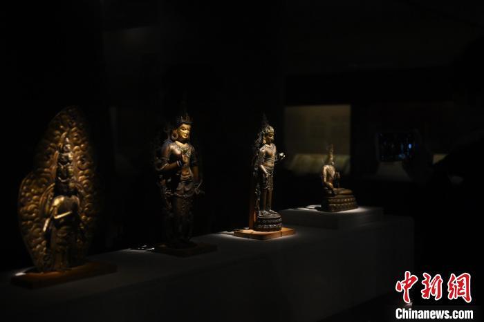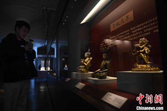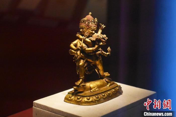 11月28日,甘肅省敦煌市,敦煌研究院敦煌石窟文物保護(hù)研究陳列中心《披沙揀金——敦煌研究院館藏文物擷英展》中的勝樂(lè)金剛像。該展由敦煌研究院主辦,2024年下半年煥新布展,展出了不同類(lèi)型館藏文物,通過(guò)這些文物蘊(yùn)含的豐富歷史信息,展現(xiàn)了敦煌文化的多元與包容,勾勒不同文明偕行共進(jìn)的歷史脈絡(luò)。中新社記者 李亞龍 攝