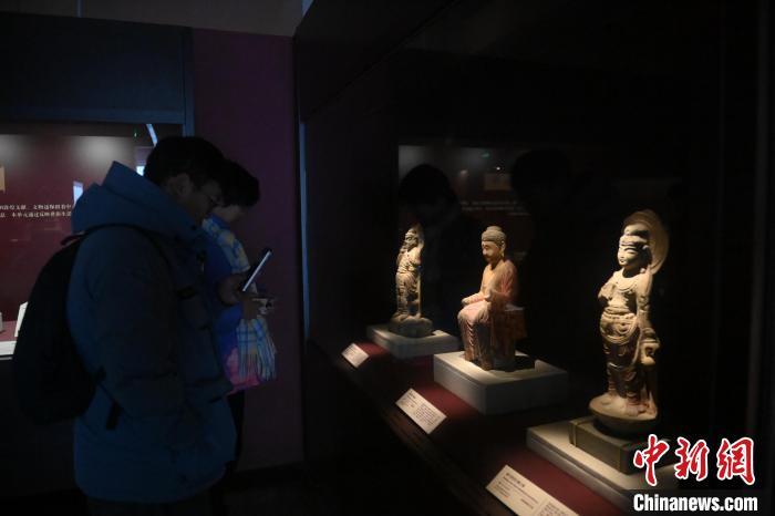 11月28日,甘肅省敦煌市,敦煌研究院敦煌石窟文物保護(hù)研究陳列中心,游客參觀《披沙揀金——敦煌研究院館藏文物擷英展》中的禪定佛石雕像。該展由敦煌研究院主辦,2024年下半年煥新布展,展出了不同類(lèi)型館藏文物,通過(guò)這些文物蘊(yùn)含的豐富歷史信息,展現(xiàn)了敦煌文化的多元與包容,勾勒不同文明偕行共進(jìn)的歷史脈絡(luò)。中新社記者 李亞龍 攝