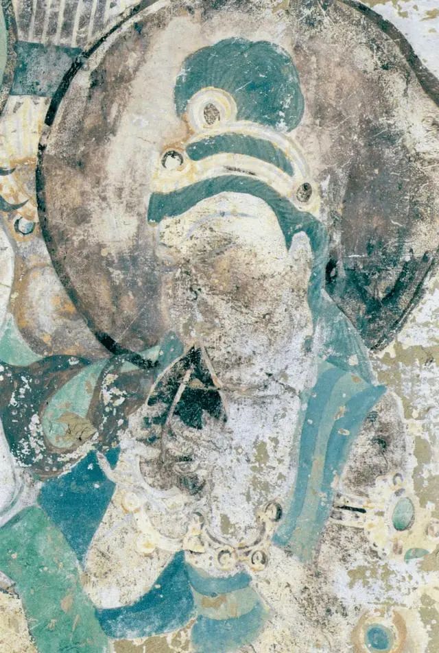 經(jīng)歷了8年的復(fù)原方案討論、實驗及準備,2000年,從南湖店搬來兩個洞窟,被安置在莫高窟北區(qū)大沖溝新建的兩個洞窟內(nèi)。關(guān)于洞窟壁畫的復(fù)原,我們采取了掛壁畫的方法,這是一種獨創(chuàng)的方法。壁畫是掛在埋入墻體的角鋼架上的。首先做好定位,掛起的壁畫暫時固定,等待全窟壁畫拼裝結(jié)束,檢查準確無誤后,將掛起的壁畫牢固地固定在角鋼架上,并將壁畫背面的鋸縫隙用麻泥填充。我們算是開創(chuàng)了壁畫搬遷修復(fù)的新方法。20多年多去了,如今兩個搬遷洞窟的壁畫及塑像保持狀態(tài)良好。對塑像的保護,就是對其中一個洞窟內(nèi)僅存的兩身佛、一身菩薩進行搬遷和復(fù)原。把佛像和菩薩像與崖體分離,牢固地包裝好塑像,然后運送至莫高窟。最后,將塑像按照原有位置及關(guān)系進行了復(fù)原。