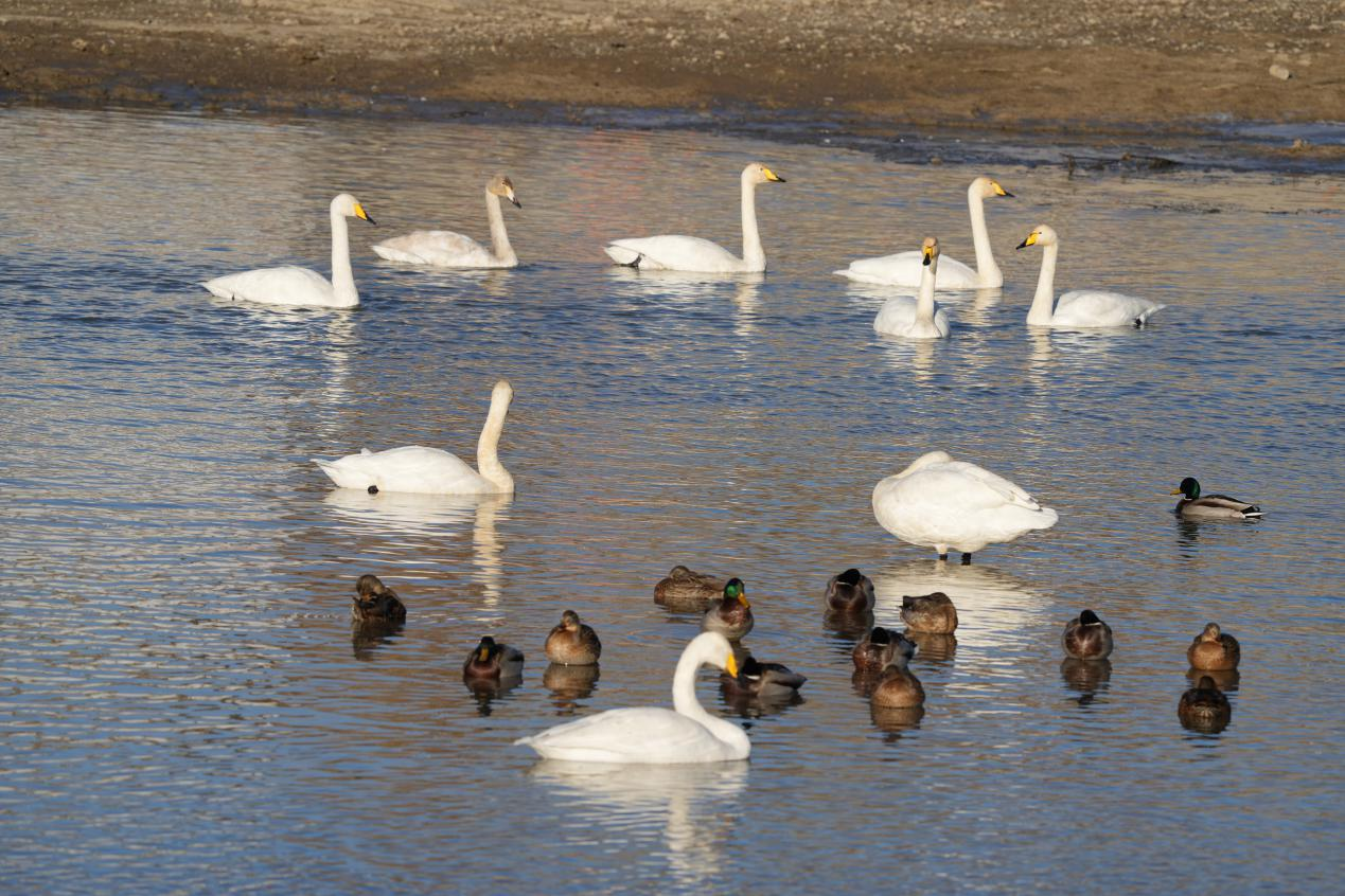 越冬的天鵝數(shù)量已增至146只 (額敏縣融媒體中心供圖)