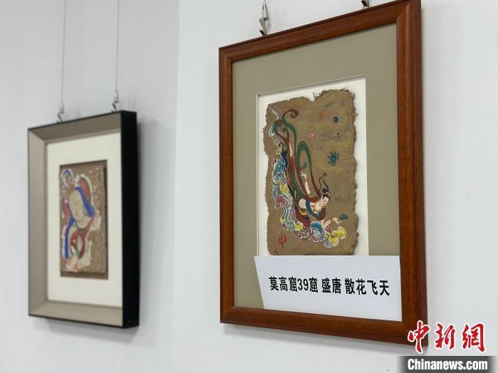 12月17日,由蘭州市七里河區(qū)委宣傳部、七里河區(qū)文體旅局聯(lián)合舉辦的“大漠孤陽映彩霞 敦煌神韻美如畫”新時(shí)代文明實(shí)踐主題活動(dòng)暨敦煌巖彩畫書畫藝術(shù)展拉開帷幕。此次參與展覽的敦煌巖彩畫,集中展現(xiàn)了敦煌文化的獨(dú)特魅力。畫師衣世民稱巖彩畫展示的是“移動(dòng)的敦煌”。圖為展出的巖彩畫。楊娜 攝