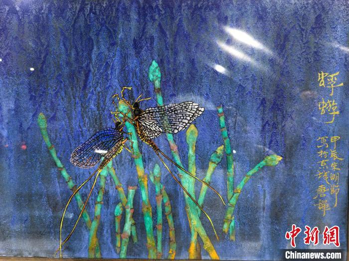 “蝶戀花”礦物顏料昆蟲復原畫作。任麗娜 攝
