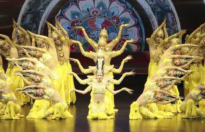 2024年9月20日,演員在第七屆絲綢之路(敦煌)國(guó)際文化博覽會(huì)舉行期間表演大型情景音畫劇《千手千眼》。新華社記者 郎兵兵 攝