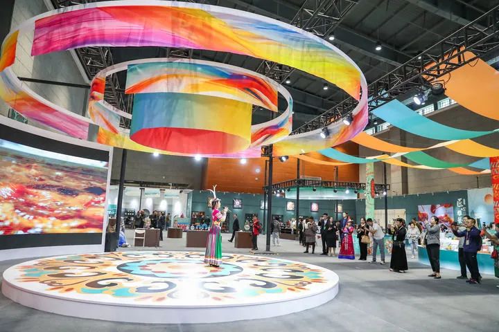 2024年9月21日,與會(huì)嘉賓在第七屆絲綢之路(敦煌)國(guó)際文化博覽會(huì)上參觀。新華社記者 郎兵兵 攝