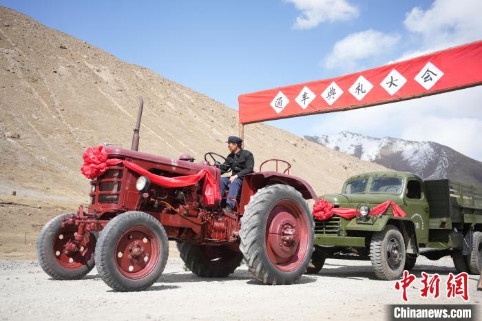 紅色“55輪式拖拉機(jī)”名叫“鐵牛”,前杠上寫(xiě)著“出生年月”:1979年10月。微電影《五十七公里》中,張?zhí)煳妮d著戲中主持修路的陶書(shū)記,在牧民們的歡呼雀躍中,將它開(kāi)進(jìn)通車典禮現(xiàn)場(chǎng)。