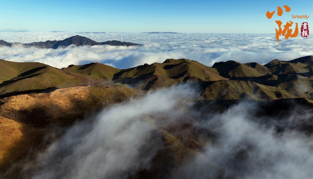 登頂望遠(yuǎn),千壩草原高山、草甸、草原相互交織,牛馬、羊群像一顆顆散落的珍珠點綴其中。茫茫云海鋪滿整個天際,翻涌的流云大河奔騰,蔚為壯觀,如臨于大海之濱。